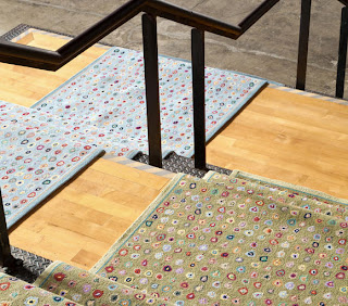 | Charlie is sitting on My Favorite Dash and Albert rug – “Gypsy Rose” next to the “cats paw” runner. These rugs DO NOT show any dirt ever! |