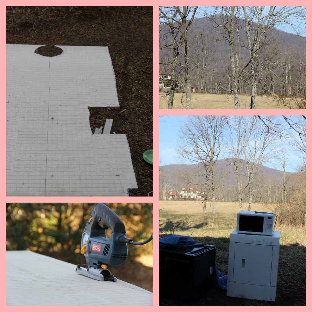 It was gorgeous yesterday…I am not usually one who is a fan of balmy warm days using up my potential cold winter days…but yesterday was nice…and a great day to work outside. My view is so lovely..well until you get to the recent temporary resting place of the old oven, the old dryer and as of the other nights dumpling mishap…the OLD microwave…