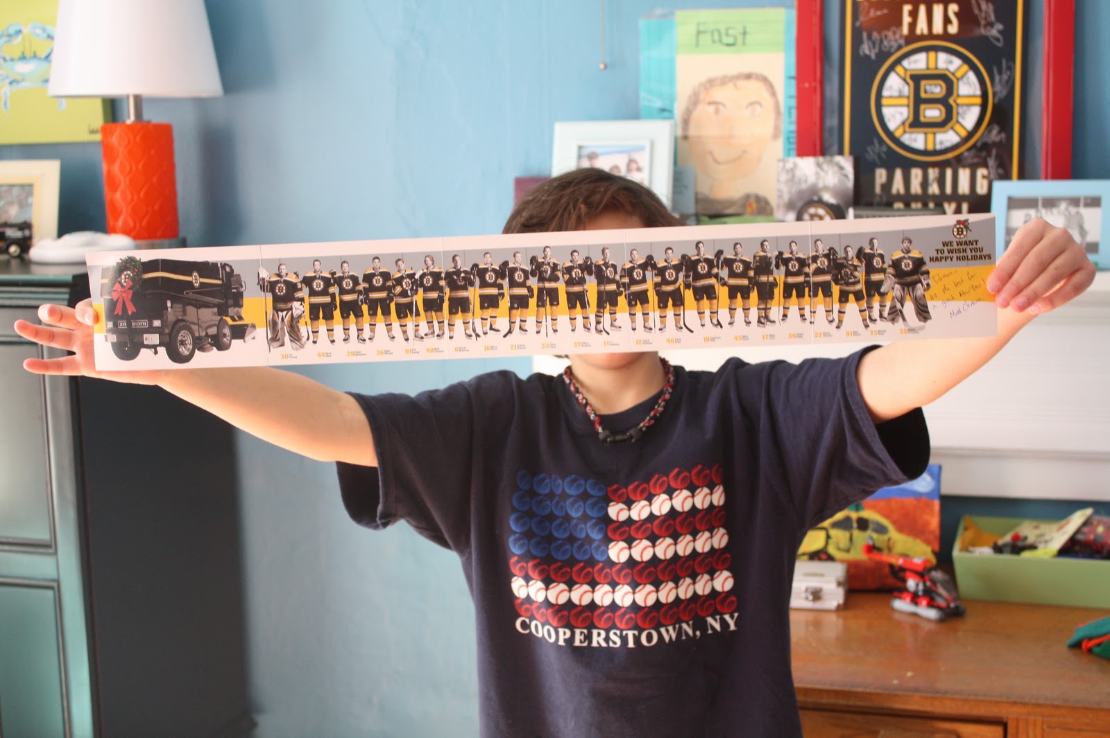 Cooper gets a signed card from the Boston Bruins every Christmas.