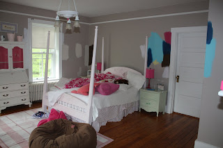 So now…I begin the MAKEOVER of Phoebe’s room. The birthday girl is on her way to The Chesapeake bay for a 4 day field trip, and I will transform her room into a teen haven. I tonically, the colors will be a hyped up version of these above – Hot Pink, Bright Navy, White White White and then a dash of yellow.