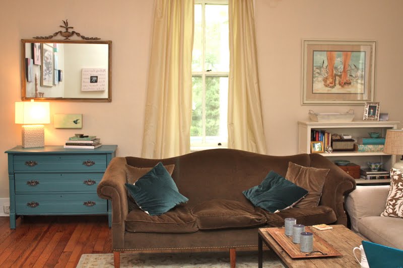Super charming- love that color!! What a beautiful shade of turquoise and it wonderful with your sofa!! Would love for you to come share at Feathered Nest Friday sometime!