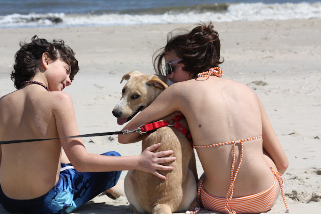 The weather is not supposed to hold out, but today, was incredible. And the 5 of us, with our pasty white bodies and our puppy Charley, soon to be featured in Country Living Magazine, hit the beach.