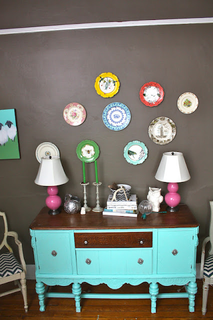 i KNEW you would love that buffet!!! it looks fab. and i love that big chunky lamp….AND your sheep painting (baaaaa) and plates;)