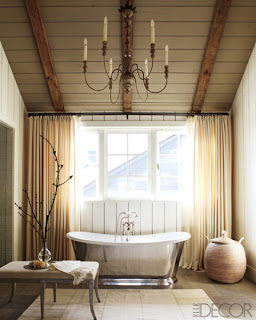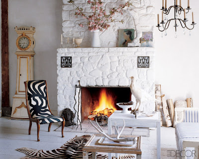 Country Living Magazine This room has ALL of the key ingredients to MODERN Country decor: 1.Belgian Linen 2. an incredible Hip chandelier 3.Rustic iron fixtures and forged tables 4.greenery and fresh flowers 5. velvet 6. antiques 7. funky mirror 8. ART – cool landscape painting 9. modern texture rug 10. Cool hip coffee table books and GENIUS! |