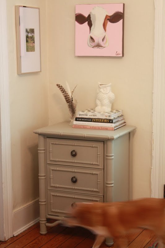 I was just given a piece of faux bamboo furniture and was trying to figure out how to make it fit in my shabby chic,country cottage house. I have already painted it..looks great..It looks like a small gentleman s closet. I painted the whole thing with a satin off white. What a transformation..I love yours too. Looks great..enough inspiration for me to continue.