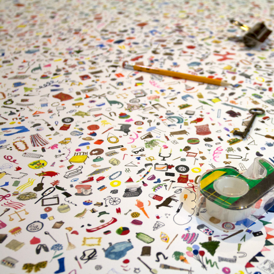 patterns which are somewhat traditional in pattern and then you get close and see that they are designed of child’s stickers!!!