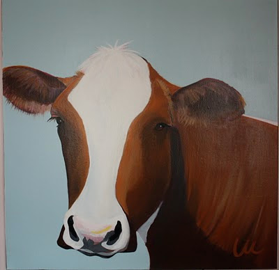 Not only do I love to paint Cows, but people LOVE paintings OF Cows, more than almost any animal. I think that cows touch a soft in people. they are pretty innocent, just moseying along, having little idea of what lies next…I think cows are nice.