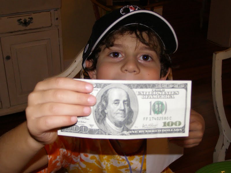 The penny wise seven year old banker held onto that hundred dollar bill for a solid year. We took many trips to Target, and vacation shopping trips that would end in tears, when I would be accused of “robbing me! making me spend my hundred dollar bill!”. Somehow that year, he stayed rich and I went broke, insuring that his bill stayed intact and in his possession in the electronic safe that he changed the password on daily.