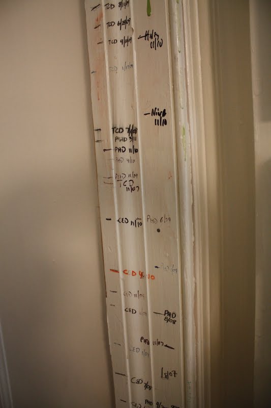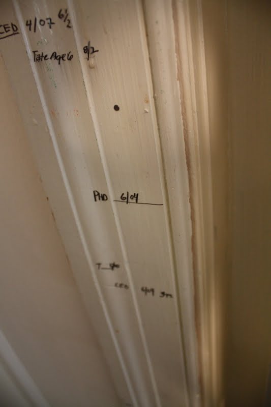 We too have a “measuring wall”, which we began when our firstborn son, Tate, was one year old. I think that this little wall is one of those combined facets of home ownership and child rearing, that, while it takes minimal time to accomplish, is invaluable and will have priceless meaning over time.