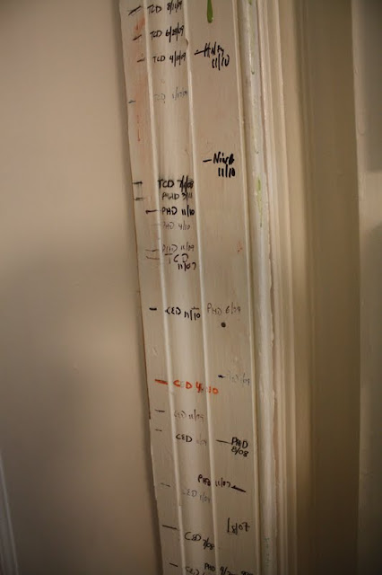 So, we do these little things, like taking little snapshots, in an effort to freeze time. The kids still grow up, and eventually move up and out, but every time I look at our measuring wall, I am reminded of where we began, how teeny they were, how fast it goes and how precious each mark is.