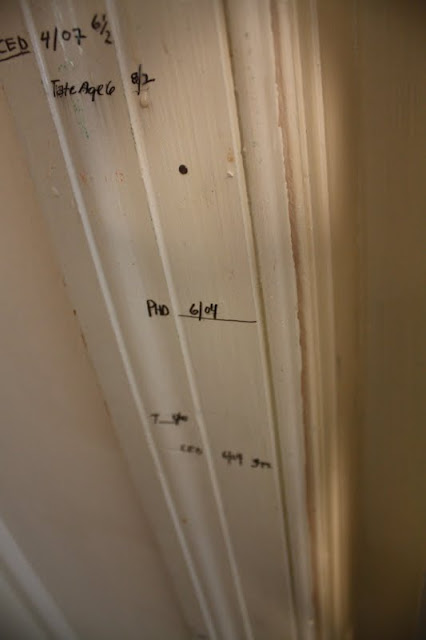 We have a “measuring wall”, which we began when our firstborn son, Tate, was one year old. I think that this little wall is one of those combined facets of home ownership and child rearing, that, while it takes minimal time to accomplish, is invaluable and will have priceless meaning over time.