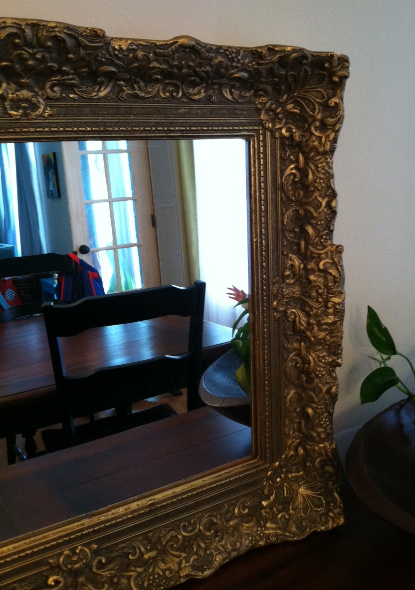 Another suggestion , since this room will be doing double duty as an office, it to paint the mirror with black chalk board paint……more whimsical and more