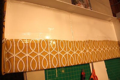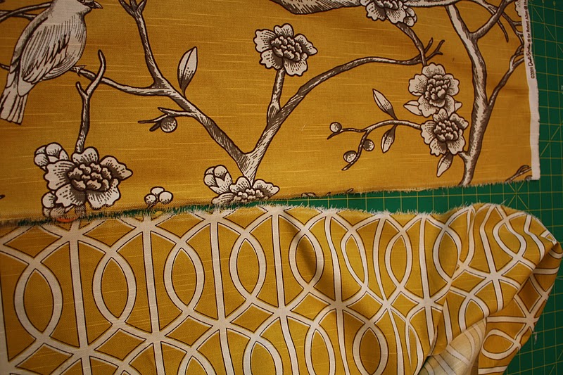 I had also discovered that I did not have enough fabric to cover the WHOLE piece so I pieced together a coordinating DWELL STUDIO Fabric, and created a lining.