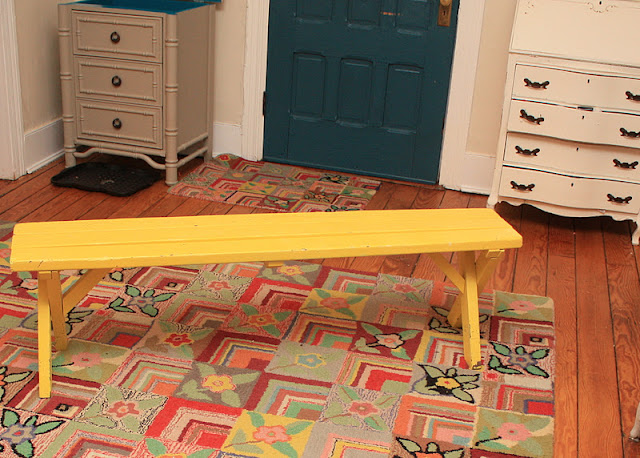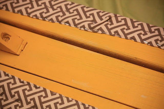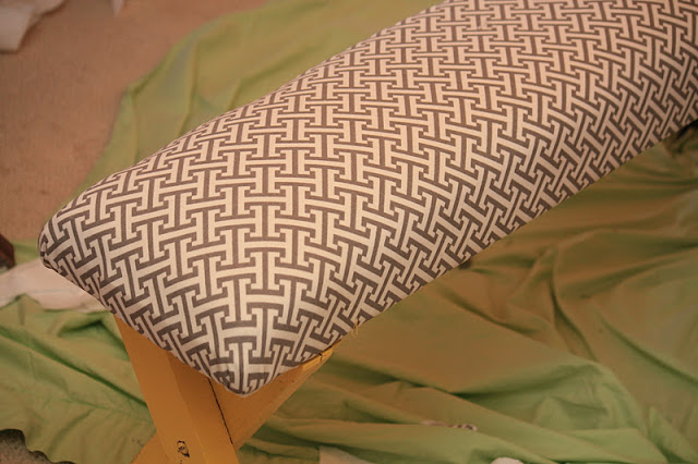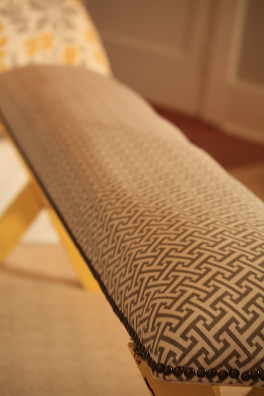 View of the bench, PRE NAILHEAD TRIM…I love the gray and yellow!!!!