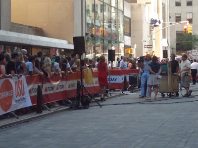 Yep, On Monday, my daughter and I hoofed,well cabbed, it down to Rockefeller Center at 7:00AM, got a choice spot, right up front and stood around the big giant rectangle with all of the “I am an OKIE from Miscokie“ and “HAPPY 100 Gramma!” people and their signs, …there we stood , Sign-Less, but no less excited and we watched and waited…to see the TODAY show folks and to get on TV…