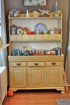 a history lesson …according me…The original purpose, if you will, of the hutch was to make available things you might need when you were setting your table, or serving a meal. However, these days, we have kitchen cabinets for those things, and the hutch really is more decorative. For a while, in my “lets use the china everyday!” phase, I had Auntie Mils china on my hutch,