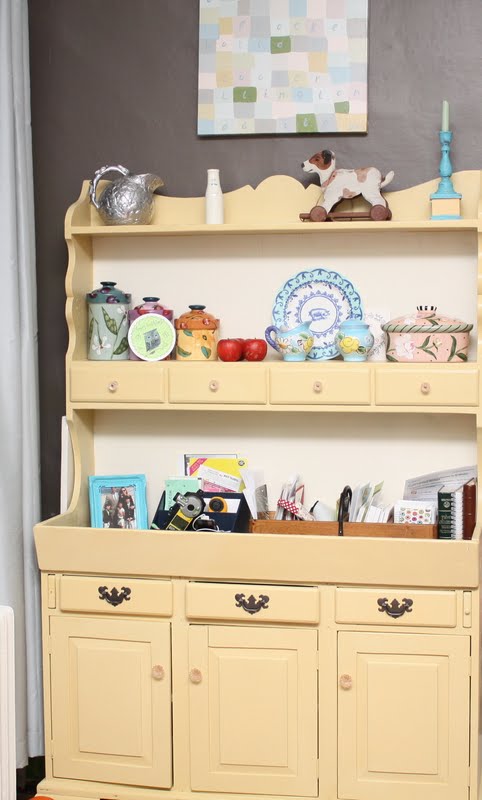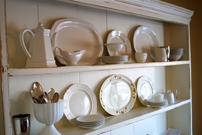 a history lesson …according me…The original purpose, if you will, of the hutch was to make available things you might need when you were setting your table, or serving a meal. However, these days, we have kitchen cabinets for those things, and the hutch really is more decorative. For a while, in my “lets use the china everyday!” phase, I had Auntie Mils china on my hutch,
