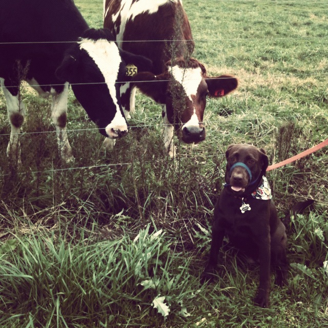 | This is the NEW Chocolate Lab in the family “Hazel” Having a lovefest with some cows… Recently I painted