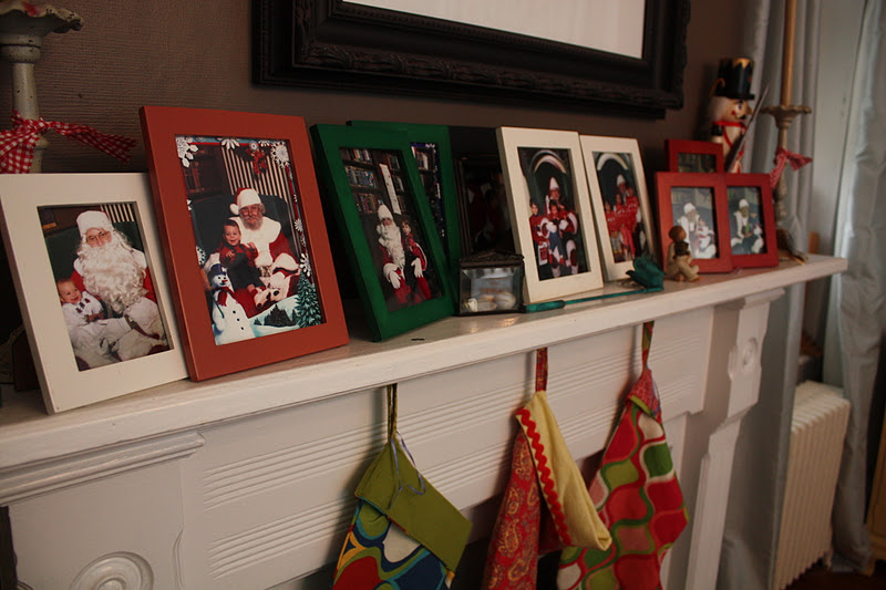 Photos of the “Santa Shots” decorate one mantle,