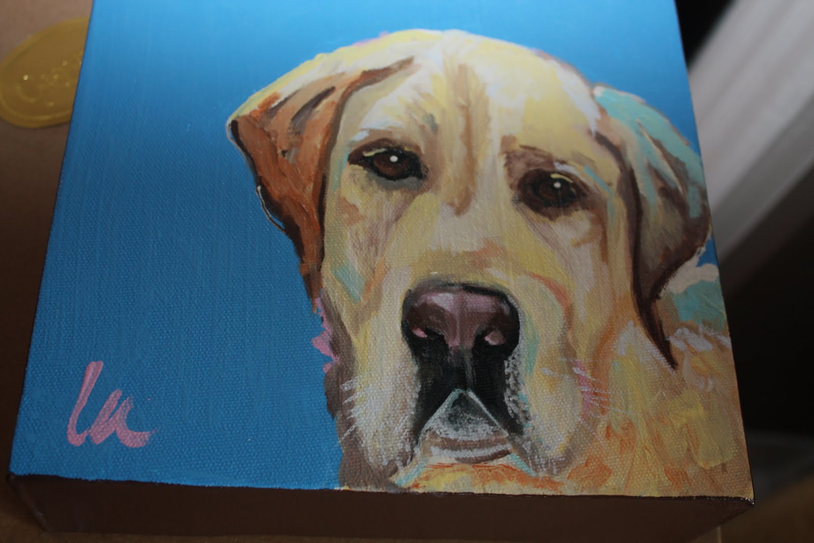 …On Thursday, had appointments in town so had to go in anyway, found a hutch for Phoebes room and I successfully delivered a painting that I did in one day for a friend to take to her sister for her birthday. I am kicking myself because I forgot to take a FINAL photo, but got this one when I was almost finished…I LOVE Labs!