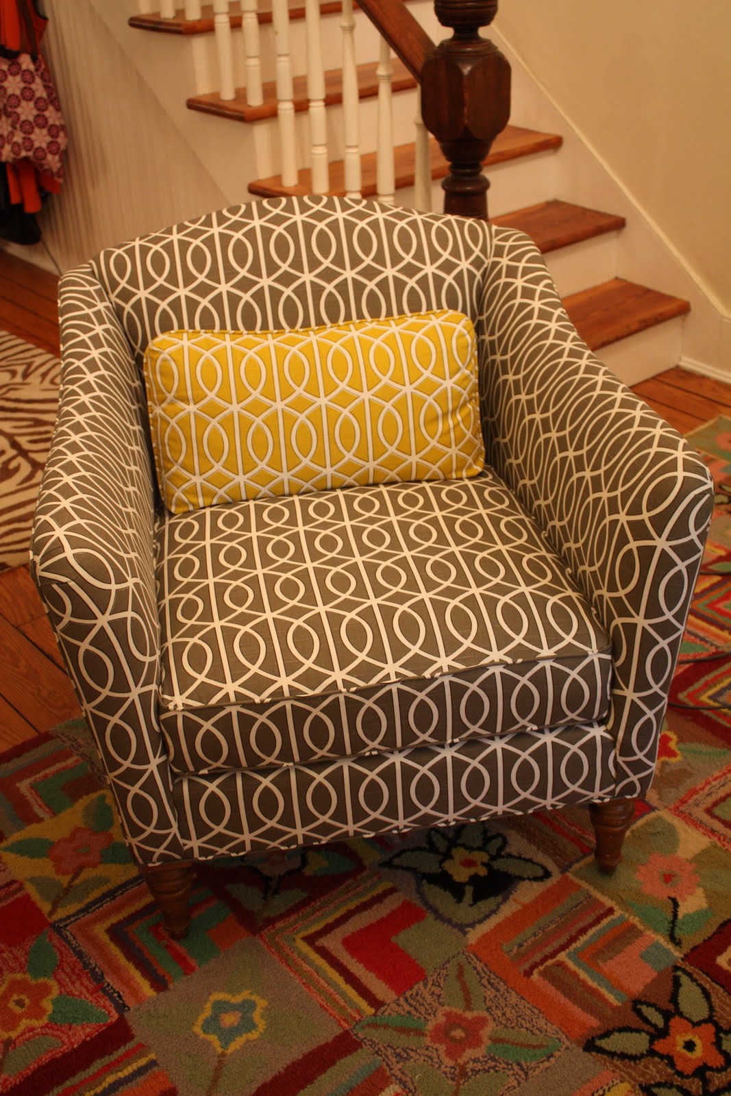 | (I just LOVE how perfect the lines are lined up on the cushion and the chair…he is so good!) |