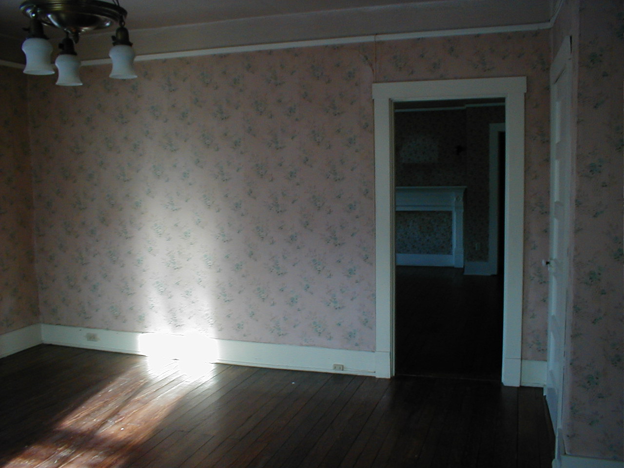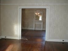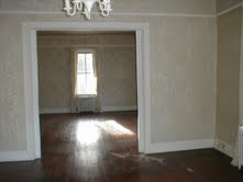 entry way… that carpeting on the stairs was disgusting…the floors were so dark and had HUGE splinters. The kiss were not allowed to go barefoot. This hall is 30′ x 10′. |