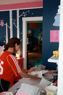 and two weeks ago, a Razzle Dazzle hot pink wall behind her bed.