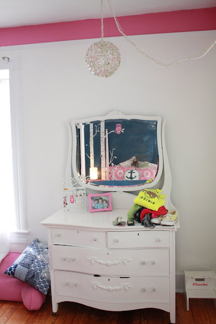 Phoebe had outgrown her dresser, a yard sale find which was better suited to toddler sized clothing, and so after much scouting, I bought this dresser at the