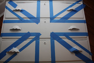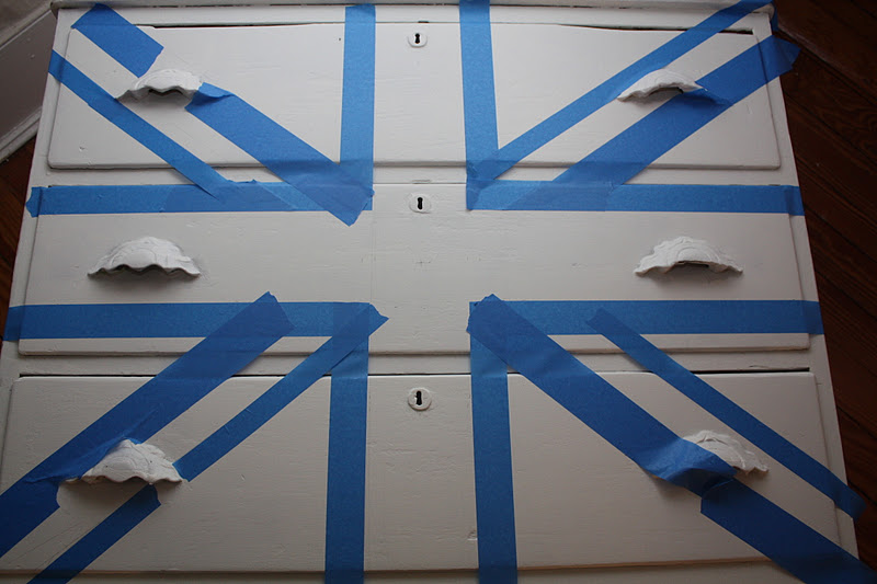 I then painted inside the boxes, Caliente Red or Mysterious Navy