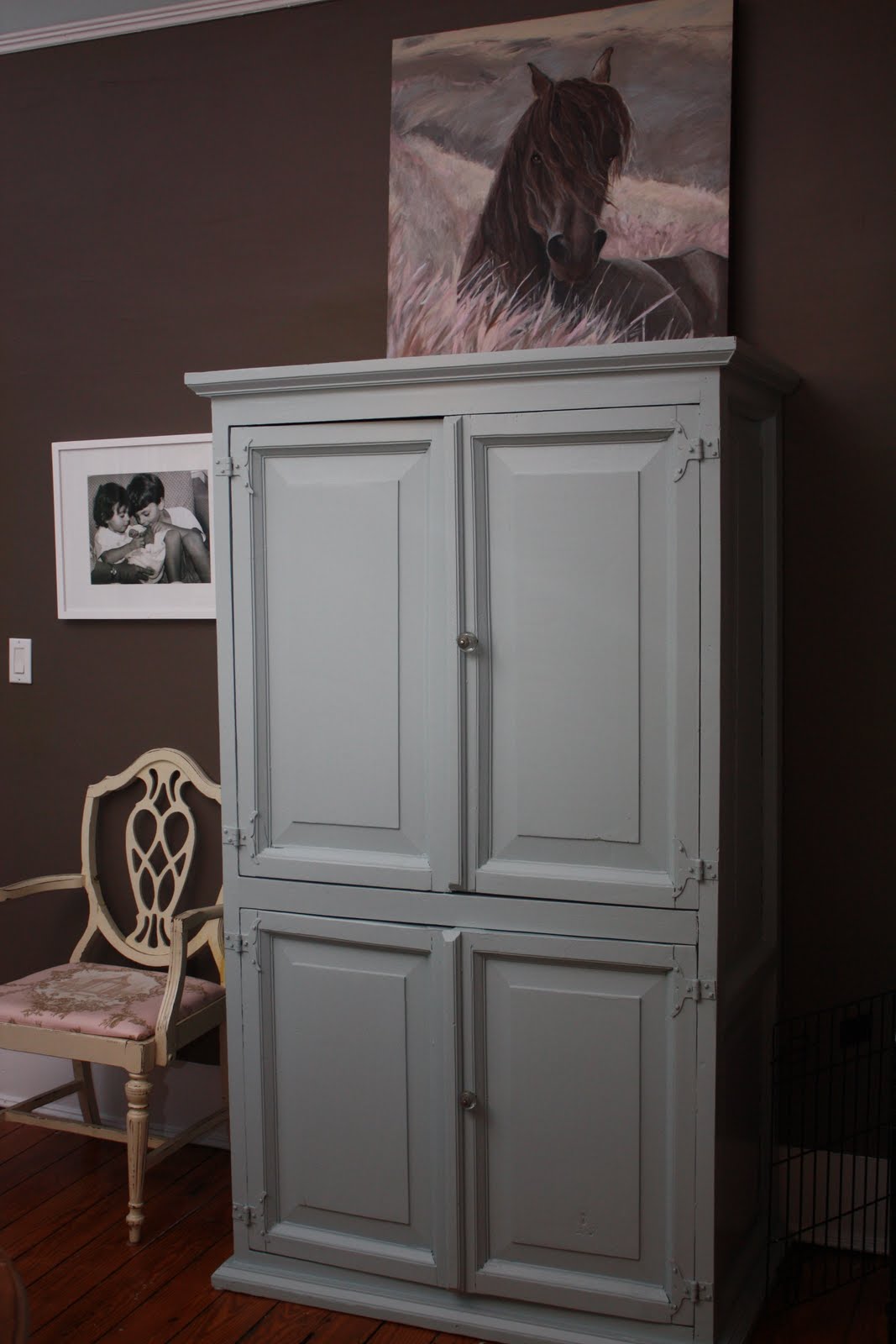 Great inspiration and transformation of your dresser, Lesli! It looks almost exact! I love your armoire cabinet. The gray color is wonderful against your wall.