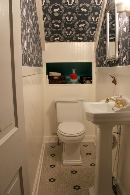 Just like the flooring, I too am hoping for wallpaper in my bathroom! I love following this project!! I just found out that my favorite fabric designer, Amy Butler is offering wallpaper! So I ordered some samples and want to try to do one wall of the bathroom in it (to save $ because it’s 85 a roll with a big repeat!) There is a window on that wall-do you have any tips on how to cut around special things like windows/trim?